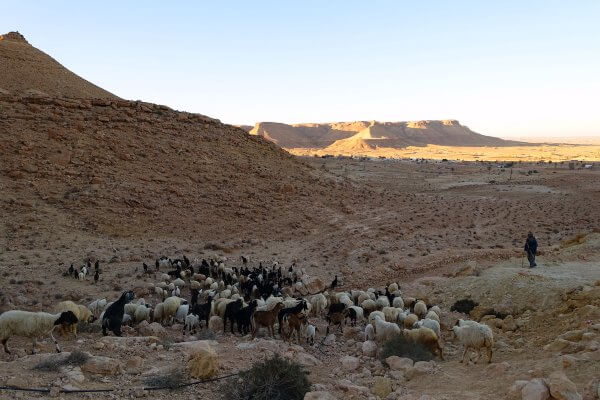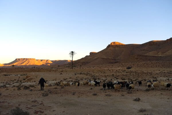 Je me retrouve ainsi bergère d’un jour, enfin bergère d’un soir. Moment époustouflant de beauté et de simplicité. Les lumières du jour se font roses. Mohamed rejoint Yannis, le berger du village. Je gambade derrière chèvres et moutons.