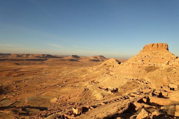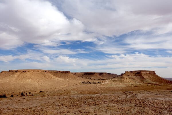 Désert de roche, le sable du Sahara n’est jamais loin.