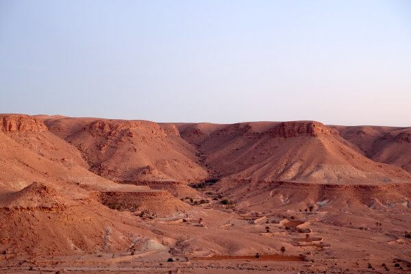 Formes, couleurs, énergie, tout me plaît ici. Les montagnes qui se couvrent de rose au couchant et d’or oranger au levant. Les vallées, canyons immenses. Les monts au sommet aplati. Les citadelles, Ksour, Ghorfa, ces greniers centenaires ciselés, accrochés au flanc des plus hautes crêtes. La pierre partout et sa puissance immense.