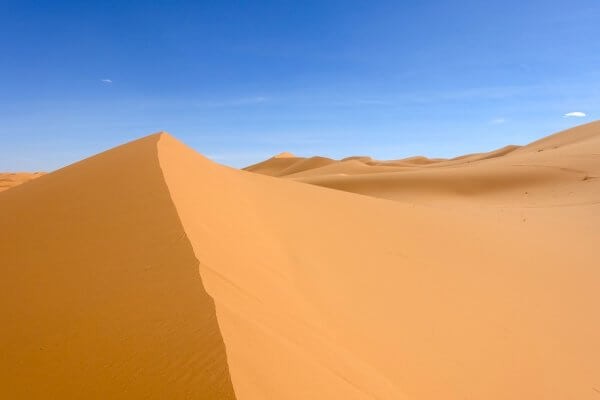 Prier, paupières closes, et les rouvrir quelques instants après : tout le tracé des dunes a changé. Les ombres s’affirment, le rose du sable s’intensifie. Le soleil est bientôt là.